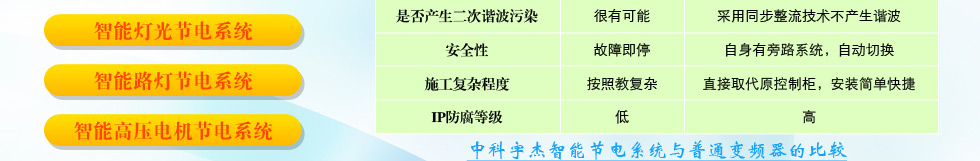 為此中科宇杰公司向社會推出節能環保先進技術與高效服務模式的概念。擁有了八大體系節電系統和完善的節能服務杰節模式,為企業進行節能改造能夠穩定的達到節電需求。下面中科宇杰來分別介紹下公司的八大節電系統和各自的特點:(如下圖)