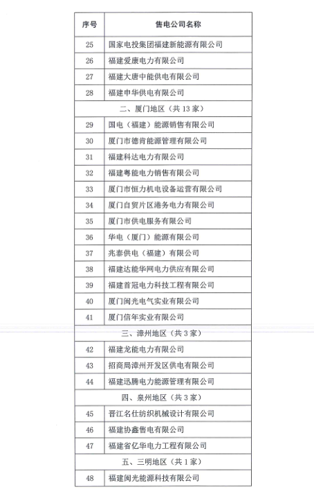 福建電力交易中心12月18日發(fā)布了關(guān)于公示2017年第一批受理注冊售電公司相關(guān)信息的公告,本次一共公示53家售電公司,從第一批售電公司的公布情況來看,福州地區(qū)占比最大,一共有28家,其次為廈門地區(qū)有13家,此外漳州地區(qū)有3家,泉州地區(qū)有3家,三明地區(qū)1家,南平地區(qū)1家,寧德地區(qū)4家。公示期為2017年12月18日至2018年1月17日,時(shí)間1個(gè)月。
