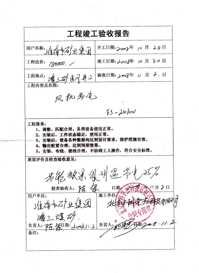 淮南礦業集團從1903年淮南煤礦開礦起,已歷盡百年滄桑。2002年以來,企業抓住天時、地利、人和的歷史發展機遇,鑄就了新的輝煌,成為全國14個億噸級煤炭生產基地、6個煤電一體化基地之一,是我國黃河以南最大的新型能源企業。2010年,位居中國企業500強第183位,煤炭、電力、房地產三大主業規模居安徽省首位。淮南集團對節能降耗非常重視,不但加強生產用電管理,增強職工的節電意識,深挖內部節約潛力,降低電力成本,最大限度的降低電能消耗,還重視主動尋求節能改造的先進技術,與中科宇杰一起于2008年進行了節能項目合作。