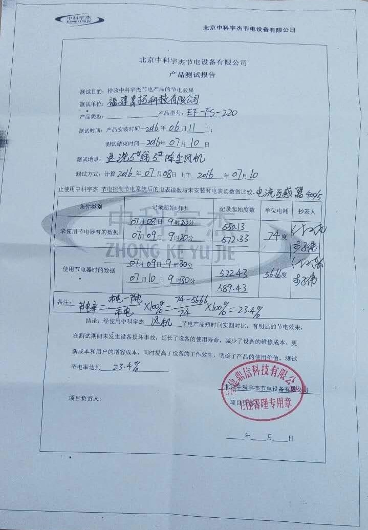 設備安裝后,經過嚴格的檢驗測試,對比安裝前后的實際能耗情況來看,顯示節能率達到23.4%,達到了預期的節電效果。此項節能項目改造,給用能企業帶了直接的經濟效益。按保質十五年計算,此次節能改造能為用能企業帶來五百三十三萬人民幣以上直接經濟效益。