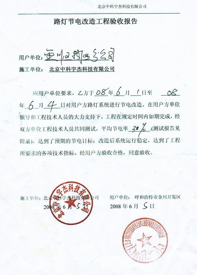 呼和浩特經濟技術開發區金川工業園區地處呼和浩特——包頭——鄂爾多斯資源富集的金三角區域,是連接呼包兩市工業走廊的橋頭堡,也是連接京、津、唐與西北地區以及蒙古和俄羅斯的重要中轉站,于1992年8月8日奠基成立,2000年7月2日經國務院批準為國家級經濟技術開發區,批準規劃面積6平方公里。開發區響應國家的號召,在“十一五”期間,對節能減排工作不遺余力,于2008年邀請中科宇杰公司對其路燈系統進行節能改造。